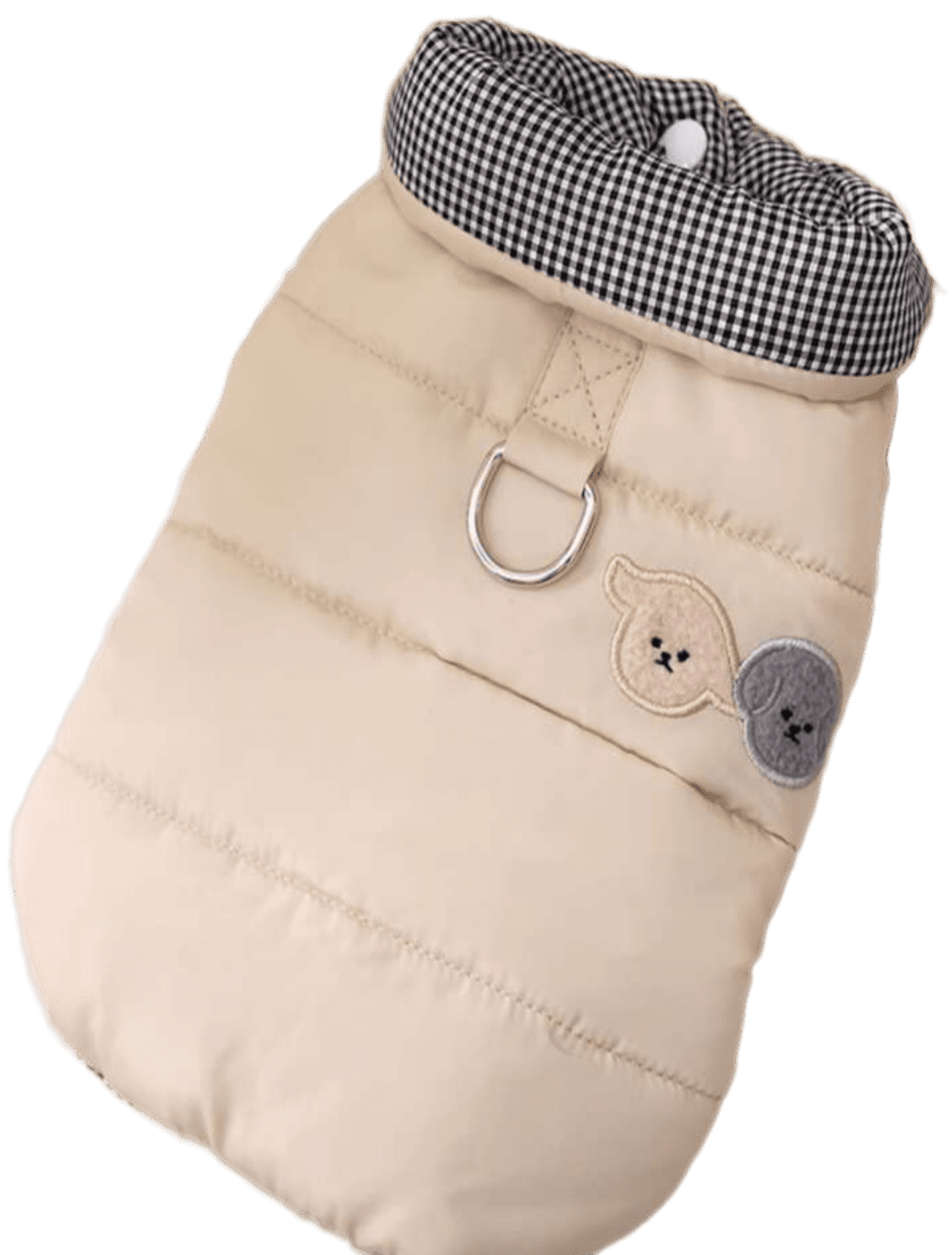 🐾 Doudoune chic intérieur vichy avec attache intégrée pour la laisse