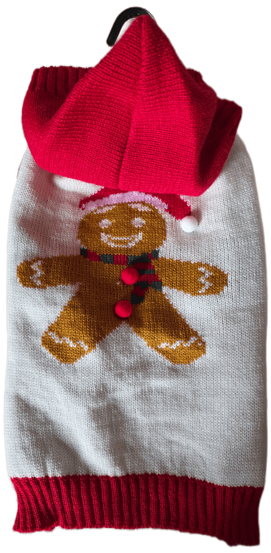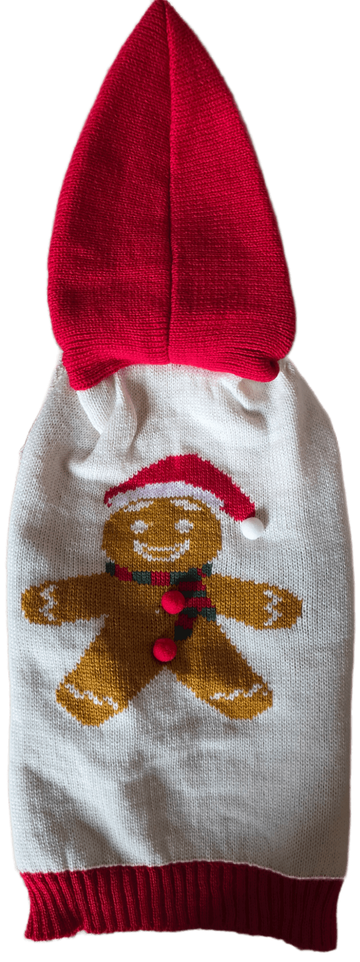 🐶 Pull de Noël pour chien décor pain d’épice avec capuche – Taille M (36 cm)