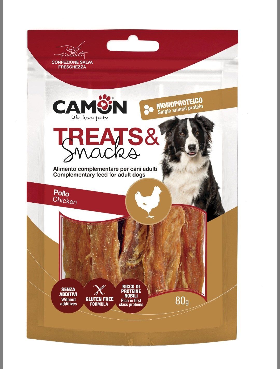 lanières de poulet Camon en sachet de 80 grammes sont une délicieuse friandise destinée à vos fidèles compagnons à quatre pattes. Fabriquées à partir de viande de poulet de qualité supérieure