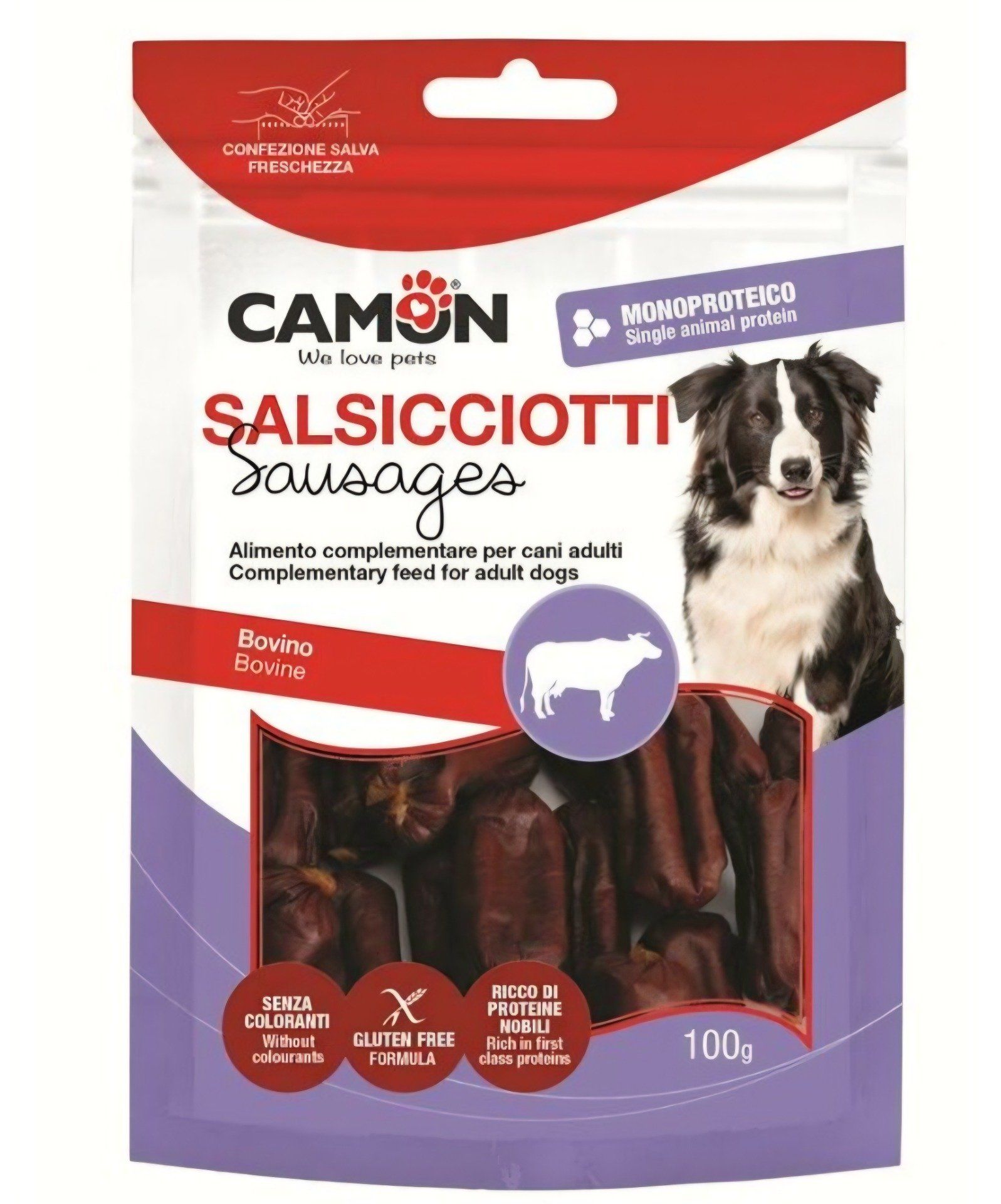 saucisses de bœuf pour chien de la marque Camon sont une délicieuse friandise conçue spécialement pour récompenser et motiver votre compagnon . Présentées en sachet de 100 grammes, ces saucisses sont fabriquées à partir de viande de haute qualité